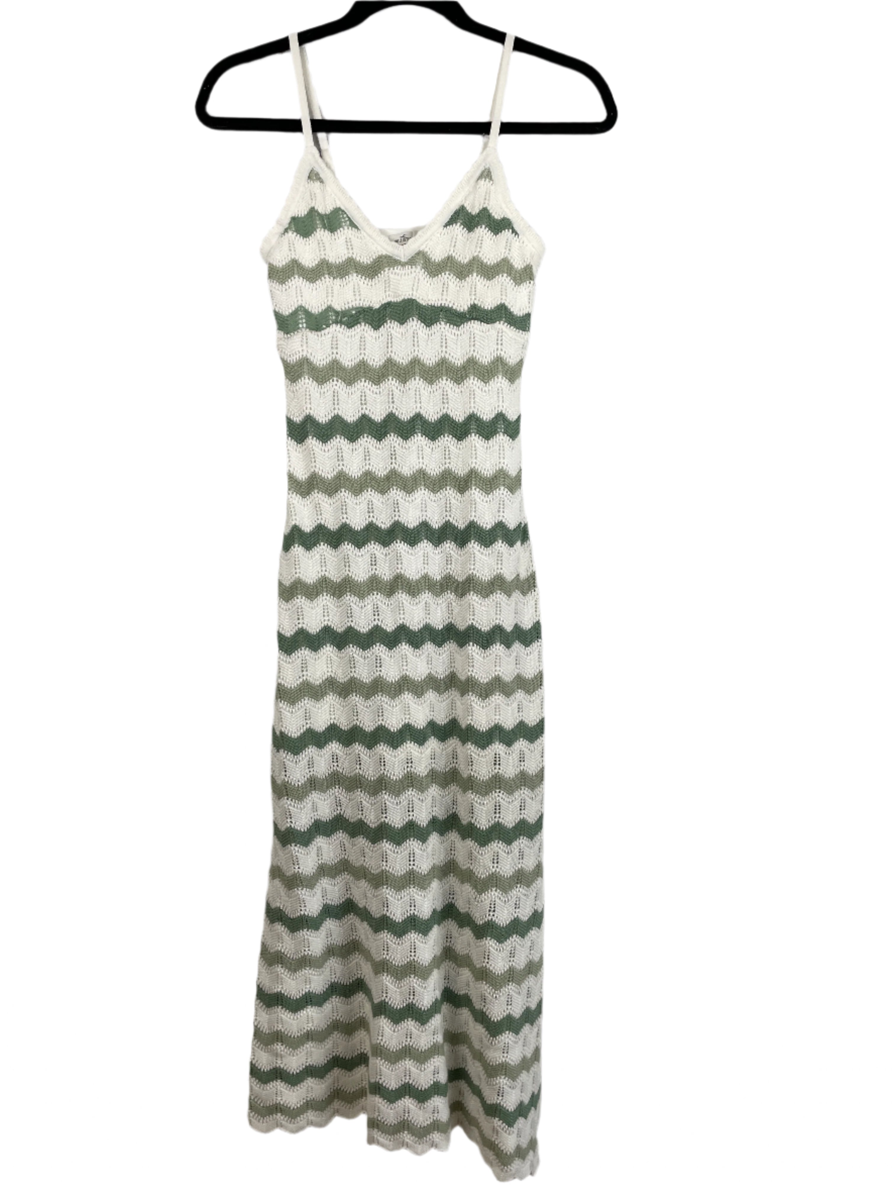 🌿 Hollister Crochet Knit Maxi Dress – XS – Cream & Green, Lined & Lovely
