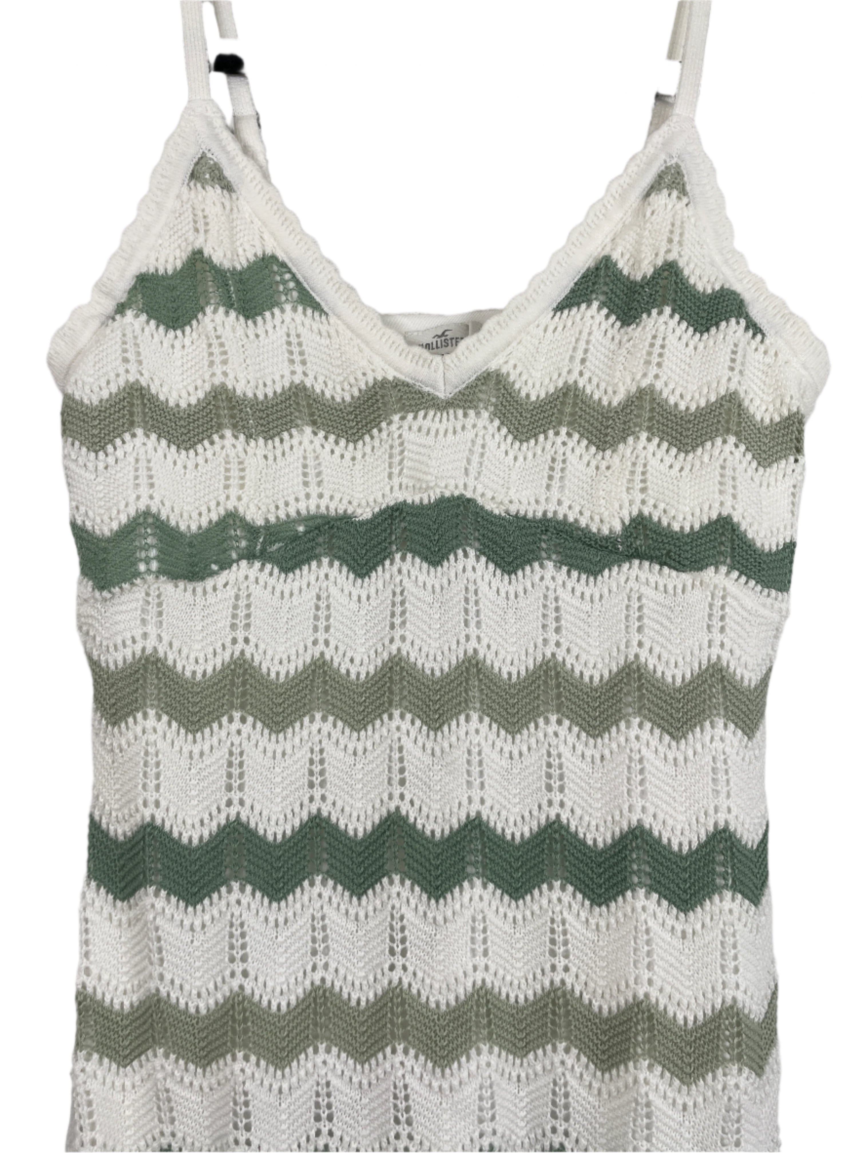 This Hollister crochet knit maxi dress is giving total summer goddess vibes 🌞 With its cream and green zigzag pattern, breezy crochet knit, and soft inner lining, it's perfect for beach days, brunch, or just strolling in style.
