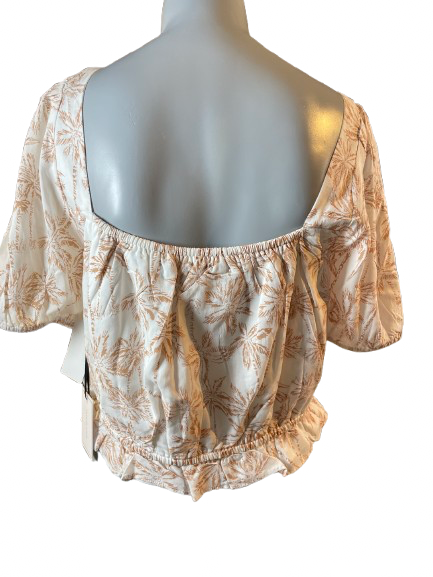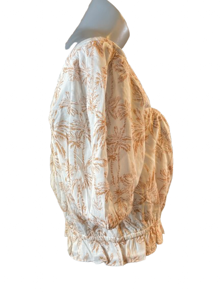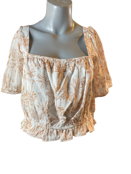 Elevate your style with the 1 State Cream Palm Print Top featuring a chic cream colour adorned with a captivating brown palm tree print. Perfect for any occasion, this top will add a touch of sophistication and tropical flair to your wardrobe. Embrace the island vibes with this must-have piece!