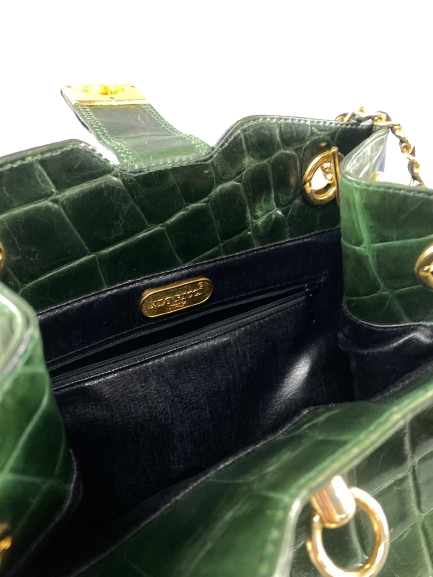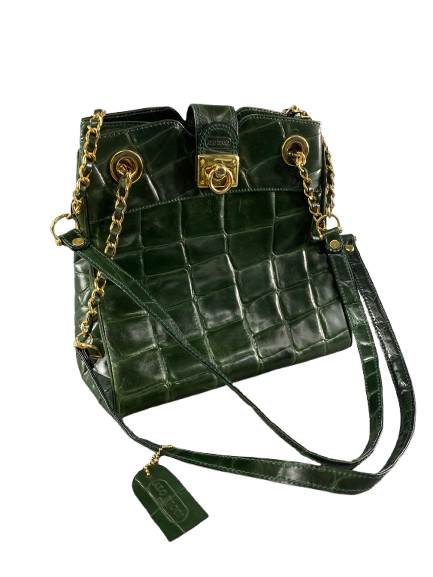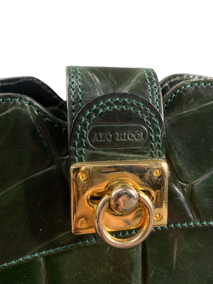 Experience timeless style with the Alo Ricci Vintage Green Shoulder Bag. Its stunning emerald green colour adds a touch of elegance to any outfit. The vintage design exudes a sense of sophistication, while the spacious interior provides practicality for your daily essentials. Elevate your wardrobe with this must-have accessory.