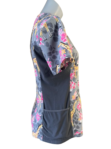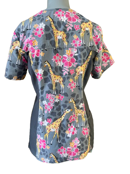 Unleash your wild side with this Cherokee iflex Giraffe Print Scrub Top! This scrub top features a playful and adorable giraffe floral print that will surely brighten up your workday. Embrace your inner fashionista with this cute and quirky design. ๐ฆ๐ผ