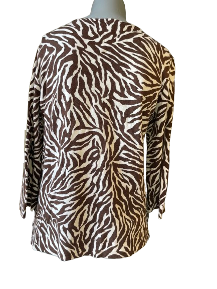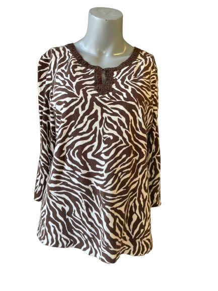 Look fierce and stylish in the Jones New York Sport Animal Print Top! π Featuring a crochet neckline and bold brown animal print, this top is perfect for adding a touch of wild to your wardrobe. π