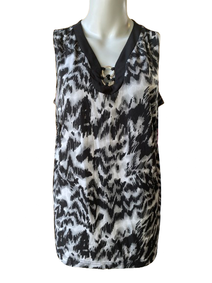 🦁Unleash your wild side with this Penningtons Animal Print Sleeveless Blouse! This black and grey top is perfect for any occasion and at under $10, it's a steal! Add a touch of feline fierceness to your wardrobe with this affordable yet stylish piece. 🐆