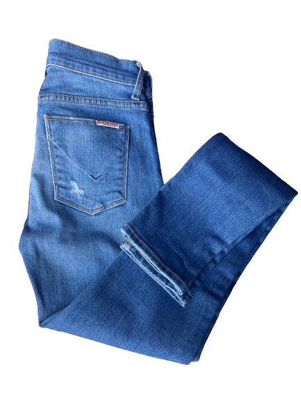 Get ready to elevate your wardrobe with these Hudson Distressed Skinny Jeans! 🙌 The streamlined design will flatter your figure, while the distressed details add a touch of edginess. Step out in style and confidence with these must-have jeans. 💥