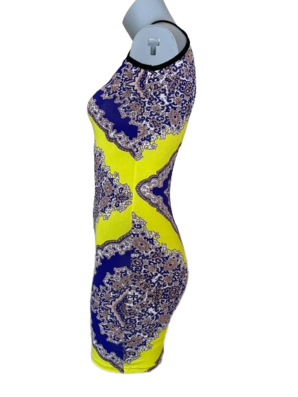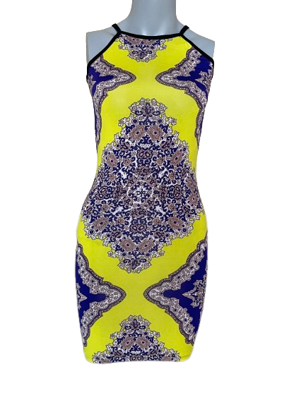 Elevate your style in this Pure Hype Yellow and Purple bodycon dress. Featuring a form-fitting silhouette and bright, colourful design, you’ll be turning heads with this bold statement look. Feel confident and daring in this perfect pick!