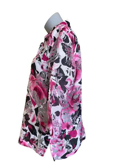 This Alia Petites blouse is a sheer, feminine piece, crafted from delicate pink and black with a pretty floral print. The perfect addition to your wardrobe for an air of elegance and sophistication.