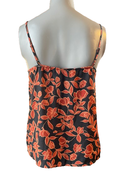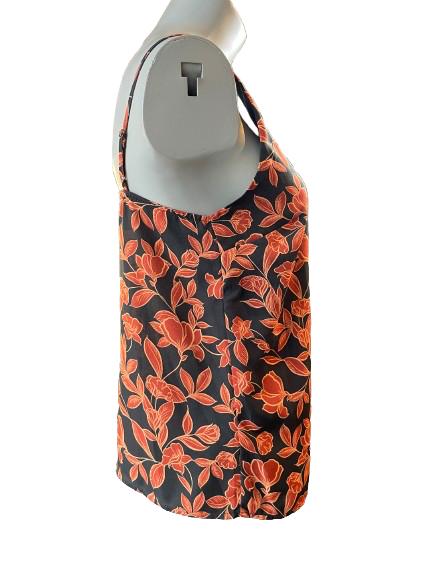 Get ready to turn heads with this Banana Republic Black Floral Flowing Tank! The rust coloured flowers on a black background create a striking contrast that is sure to make you stand out. The flowing material not only adds a touch of elegance, but also provides a comfortable and flattering fit. Upgrade your wardrobe and make a statement with this stunning top. ๐ผ๐ค๐