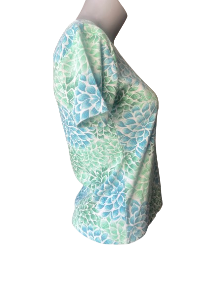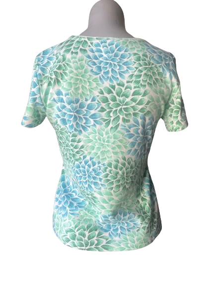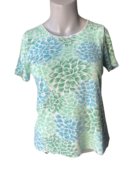 Discover the beauty of nature with this secondhand Karen Scott Green Blue Floral Short Sleeve Top! ๐ธ๐ฟ With its stunning green and blue floral design, you'll feel like you're walking through a gorgeous garden. Stay stylish and comfortable with this top! ๐
