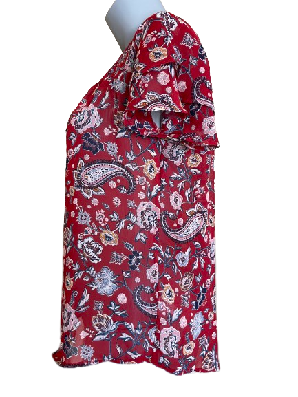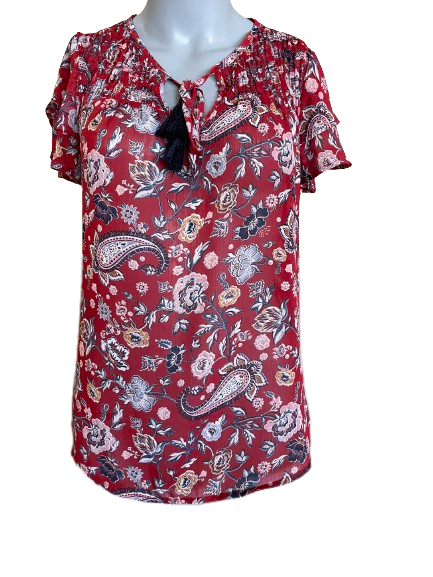 Bring a bit of boho-chic to your wardrobe with this Knox Rose sheer red paisley blouse! Featuring an artistic paisley print, tassel string detail, and a flirty, airy silhouette, you'll be looking fierce and feeling free.