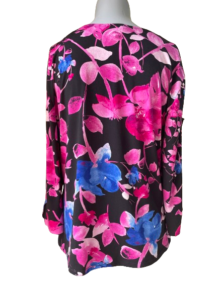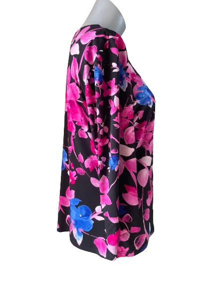 Add a pop of tropical paradise to your wardrobe with Laura Pink Tropical Print Top! This beautiful top features a vibrant pink print against a bold black background, perfect for making a statement. Stand out and feel confident with this unique and stylish top. ๐บ๐ด