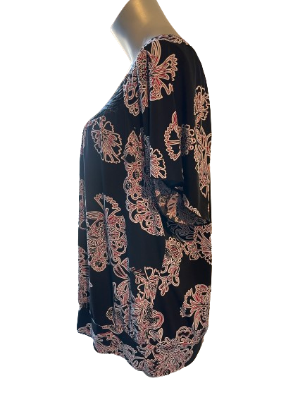 Get ready to stand out in style with this secondhand Perseption Short Sleeve Black Floral Top! This beautiful top features a stunning black floral design that is sure to turn heads. Elevate your wardrobe with this must-have piece and make a statement wherever you go. Order now and experience the beauty for yourself!