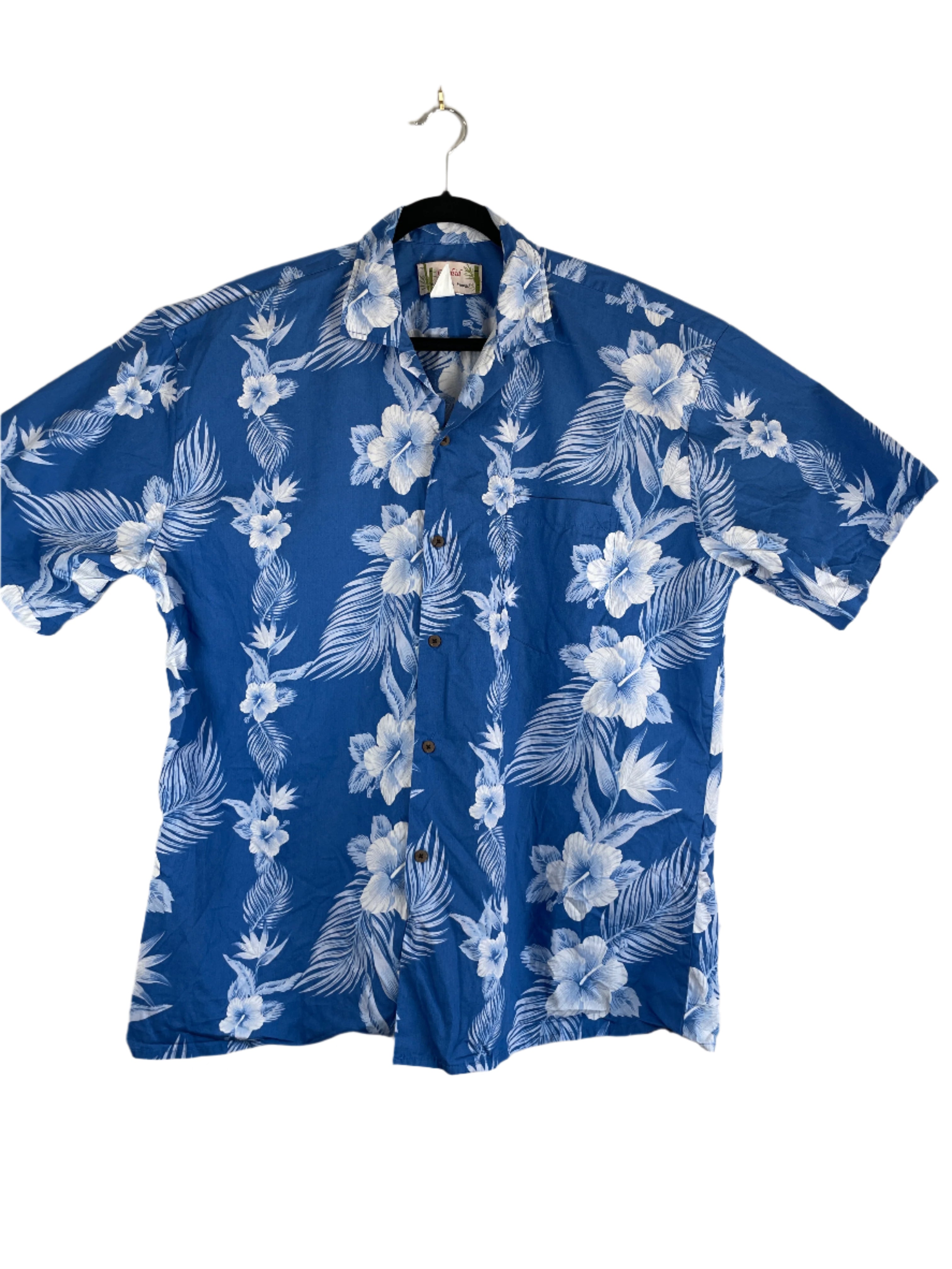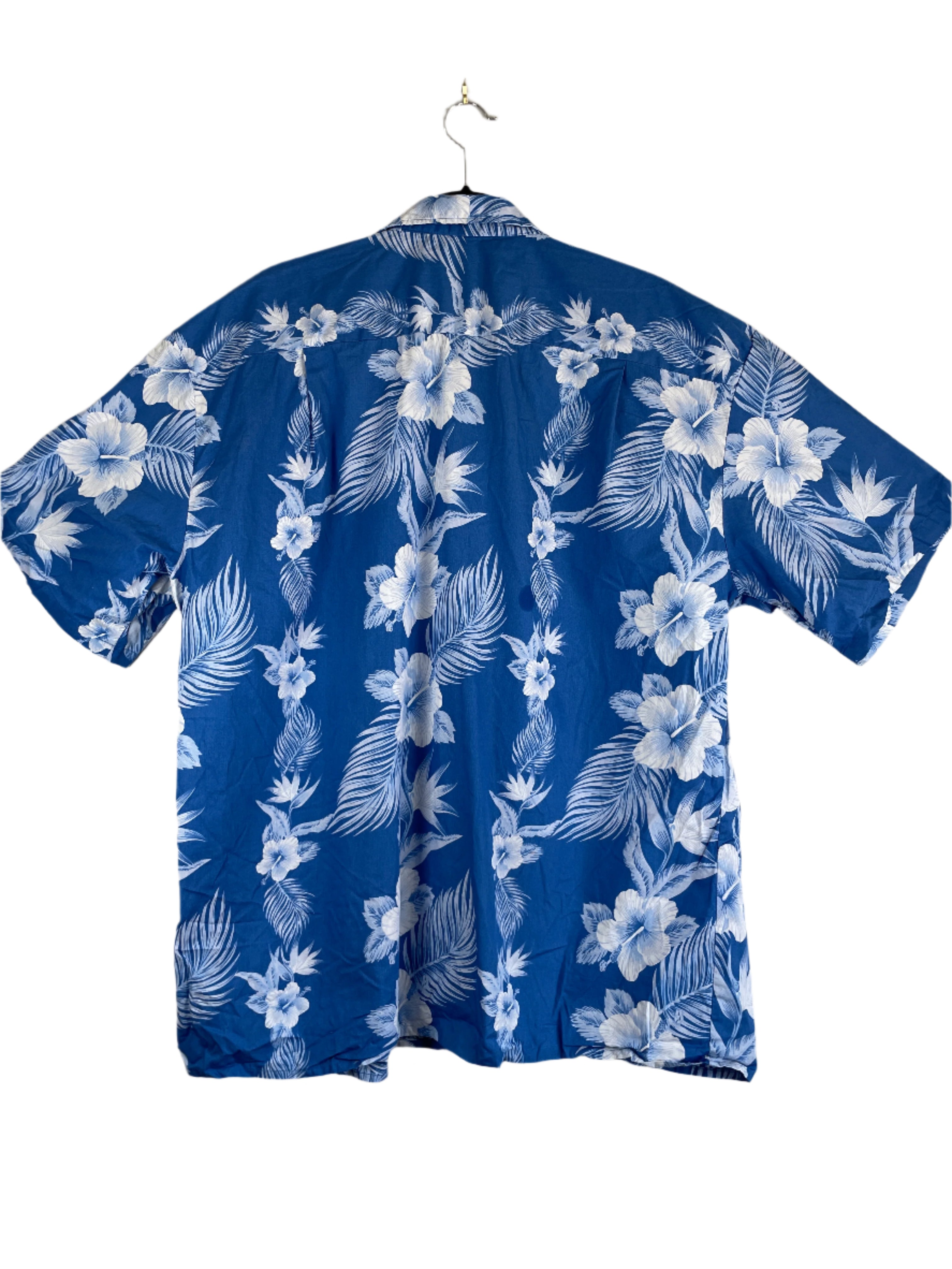 Bring the island vibes wherever you go with this vibrant blue Hawaiian shirt featuring a bold white hibiscus and palm print. Designed by Orchid in Hawaii, this relaxed shirt is made for sunny days and laid-back style. Button-up front, short sleeves, and a classic collar make it a go-to for summer BBQs, vacations, or everyday cool.
