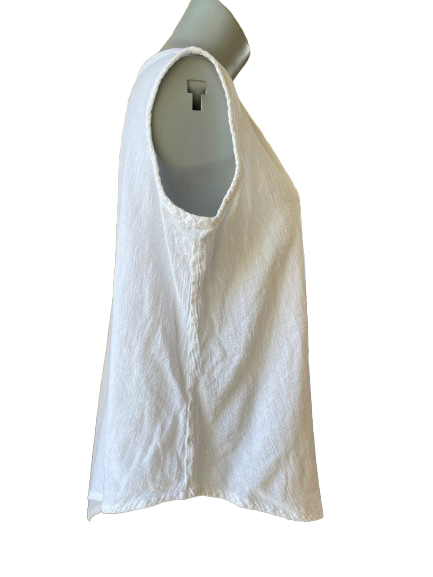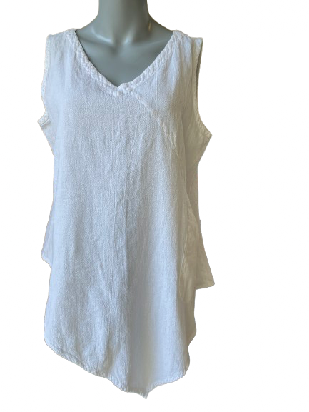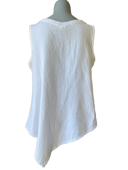 "Upgrade your summer wardrobe with this Abaca White Irregular Hem Sleeveless Top! Beat the heat in style with this cool and chic top featuring an irregular hem and sleeveless design. Perfect for a hot summer day!" šššÆ