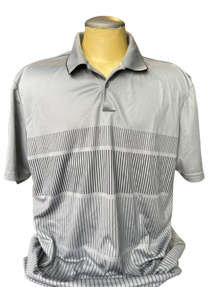 Stay stylish and comfortable on the golf course with the Adidas Grey Striped Polo Shirt! With its classic grey stripes, this polo shirt will elevate your style while keeping you cool and comfortable. Perfect for a round of golf or a casual day out. ⛳️👕