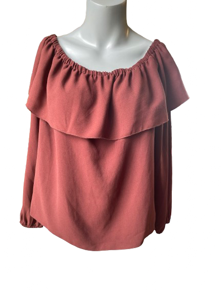 Elevate your look with the Aritzia Wilfred Brown Off Shoulder Blouse! This beautiful brown blouse boasts a flowing silhouette and an off the shoulder design, perfect for making a statement. Transform any outfit and feel confidently stylish with this chic and versatile piece.
