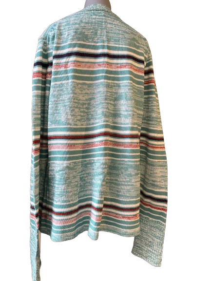Be stylish with the Baymart Vintage Green Striped Cardigan! Embrace a retro vibe with its vintage design. Elevate your wardrobe with this unique piece for a timeless and chic look.