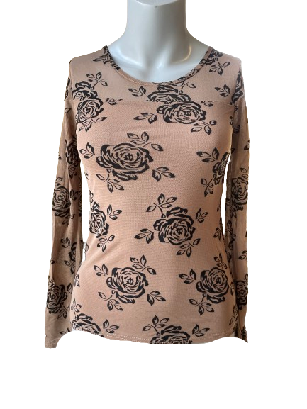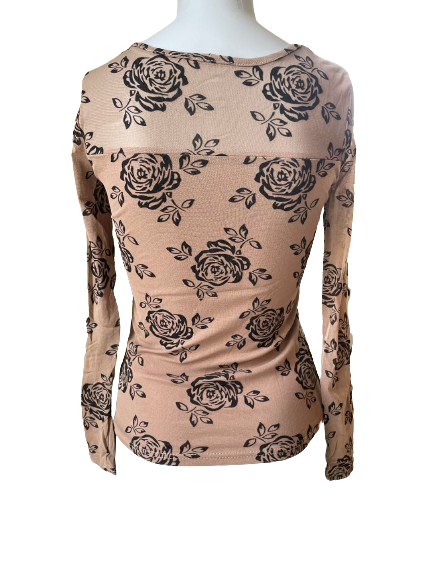Add some flower power to your wardrobe with this Brown Floral Sheer Sleeves Top! This beautiful top features a playful black floral design on a cozy brown fabric and sheer sleeves, embellished with spots of glitter for a touch of shimmer. Bring some glint to your outfit and stand out in style! 🌸✨