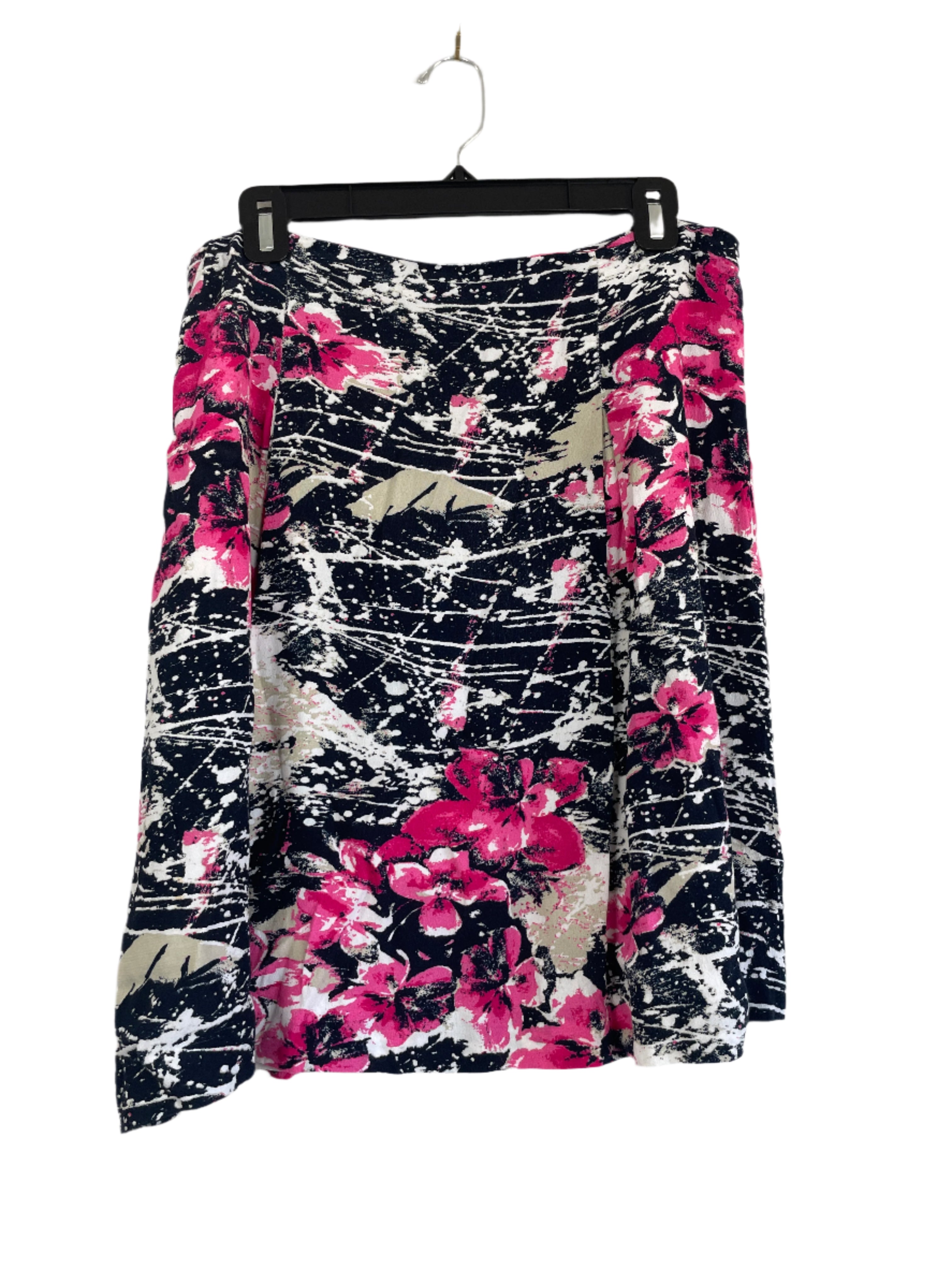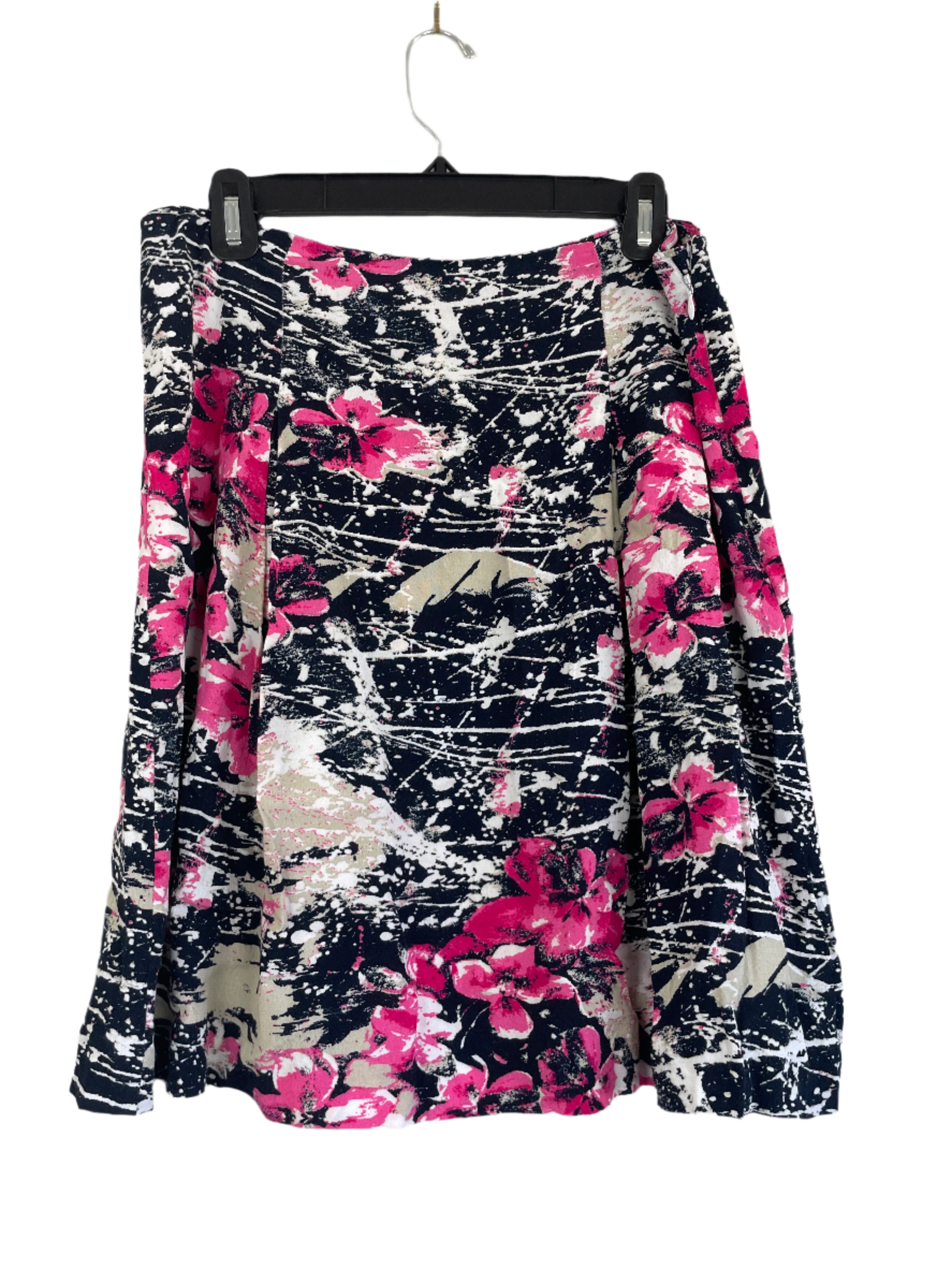 Add a burst of colour to your wardrobe with this eye-catching skirt from Cleo Petites! Featuring a bold black, pink, and cream floral splatter print, this skirt flatters with front pleats and a side zipper with button closure for a smooth silhouette. Fully lined for comfort and structure.