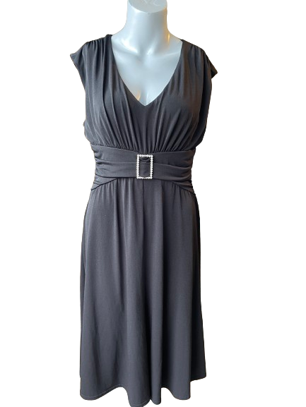 Elevate your look with this secondhand Coldwater Creek Black Sleeveless Dress! This stunning dress features a sparkling rhinestone belt, adding glamour and sophistication to any outfit. Perfect for any special occasion, be the center of attention with this stylish and chic dress. ✨