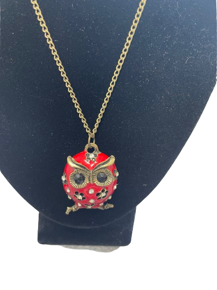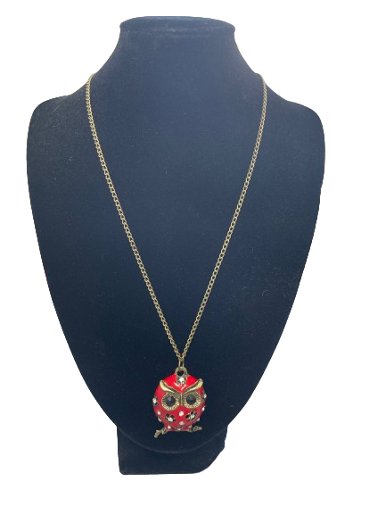 Add a playful pop to your look with this charming ladybug pendant necklace! Featuring a bright red enamel bodywith sparkling rhinestone accents, this fun accessory hangs on a continuous antique-gold tone chain with no clasp. The hollow-backed pendant keeps it lightweight and easy to wear. Ideal for layering or adding quirky flair to your outfit.