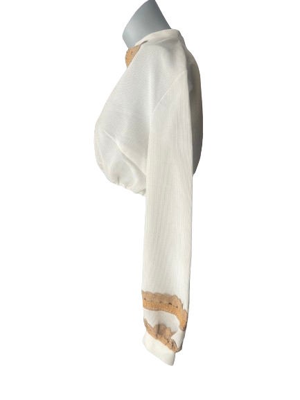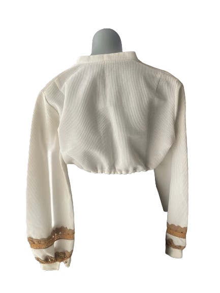 Elevate your style with this secondhand Diolen Loft Cream Boho Vintage Crop Top! Embrace the bohemian spirit with this unique and fashionable piece. Stand out from the crowd and feel confident in this comfortable and stylish crop top. Perfect for any occasion, this top will add a touch of vintage charm to your wardrobe. 😍🌼