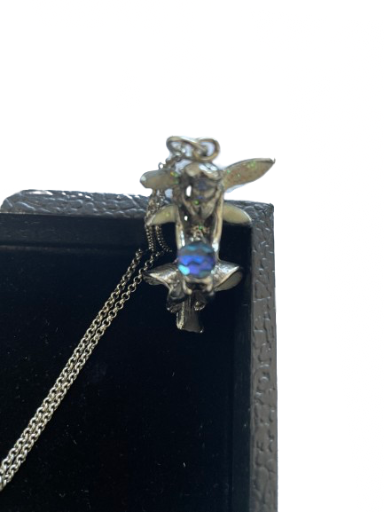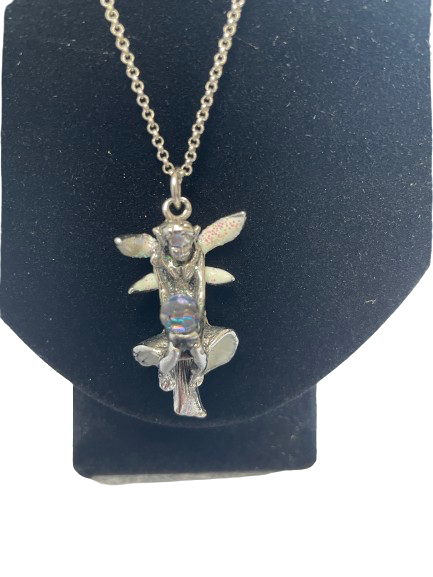 Pendant: Fairy holding iridescent orb
