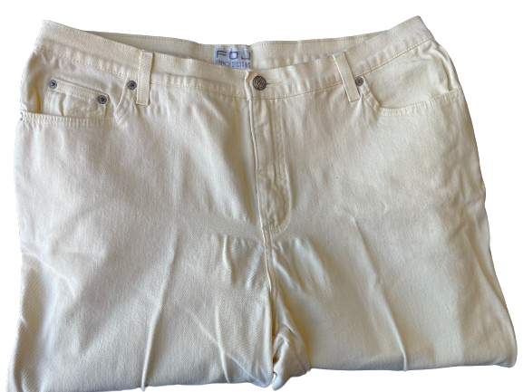 Elevate your wardrobe with FDJ French Dressing Yellow Capri Jeans! Made with stretch denim for comfort, these jeans boast a soft yellow colour that will make you stand out in style. Perfect for any occasion, these jeans are a must-have for any fashion-forward individual. ❤️
