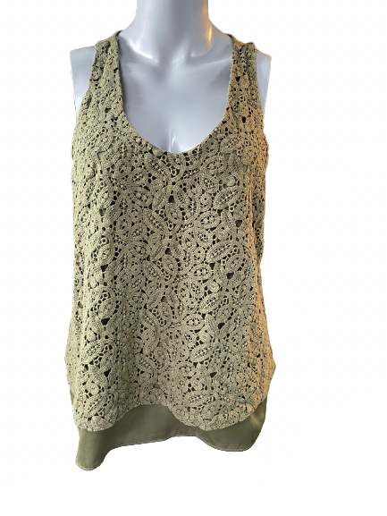 Elevate your summer wardrobe with this GAP Army Green Petite Crochet Overlay Tank. The beautiful crochet overlay adds texture and dimension, while the gorgeous green colour will make you stand out in any crowd. Perfect for a day out with friends or a date night, this tank will bring a touch of effortless elegance to any outfit.