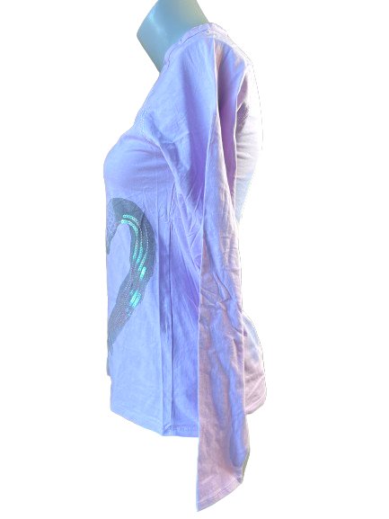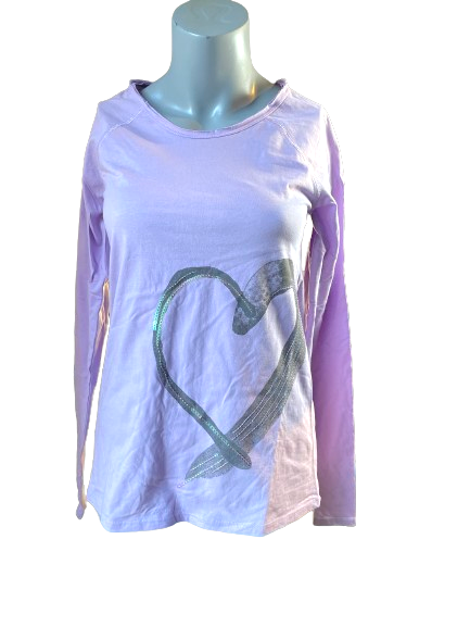 Get ready to sparkle with this Hue Purple Sequin Heart Long Sleeve Top! With a playful heart sequin design, this top is perfect for adding some fun and shine to any outfit. Show off your unique style with this eye-catching piece. 💜