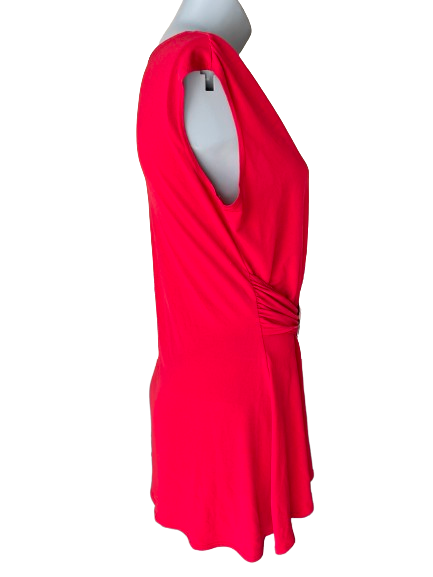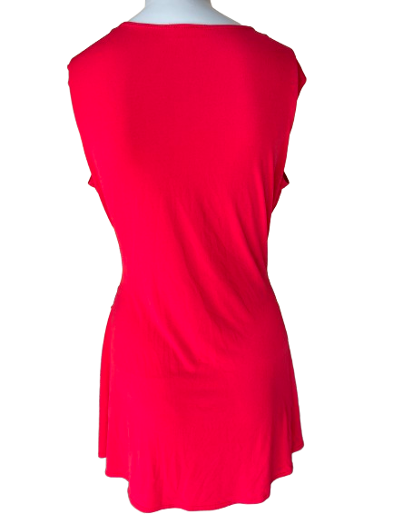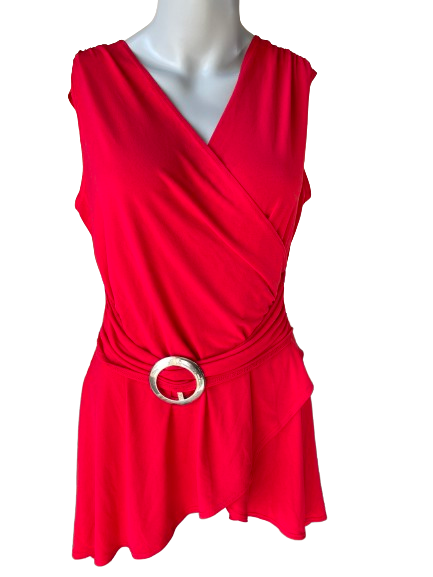 Unleash your fashion creativity with this Initiatives Red Sleeveless Blouse! 🎉 This unique blouse features a cross over v-neck and a belted waist, making it a flattering and stylish addition to your wardrobe. The irregular hem adds an edgy touch, while the sleeveless design makes it perfect for any season. Upgrade your wardrobe with this must-have piece today! 💃