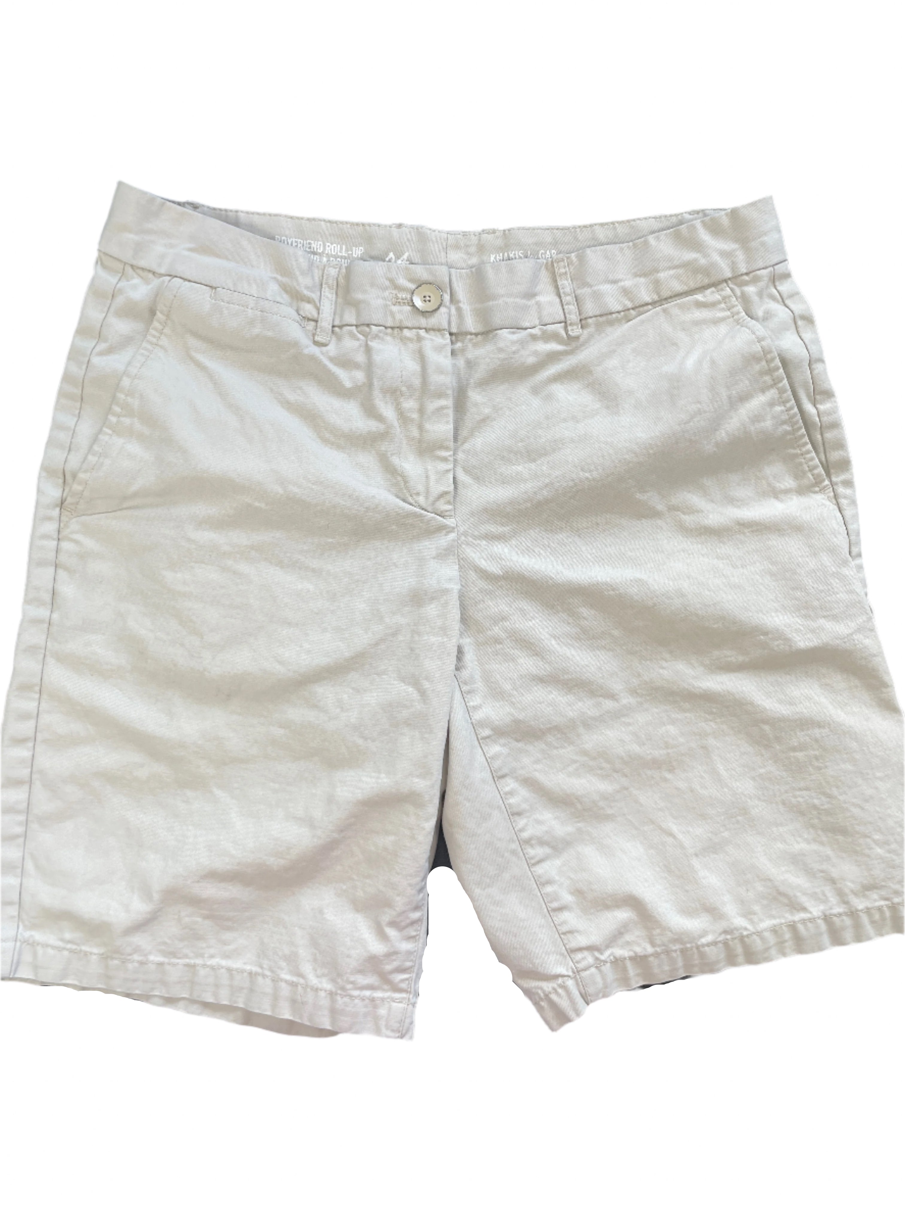 Effortlessly cool and comfy! These Khakis by GAP boyfriend roll-up shorts are crafted from 100% cotton for breathable wear and laid-back style. Designed in a classic neutral shade, they're ideal for everything from weekend errands to summer strolls. In excellent condition!