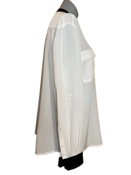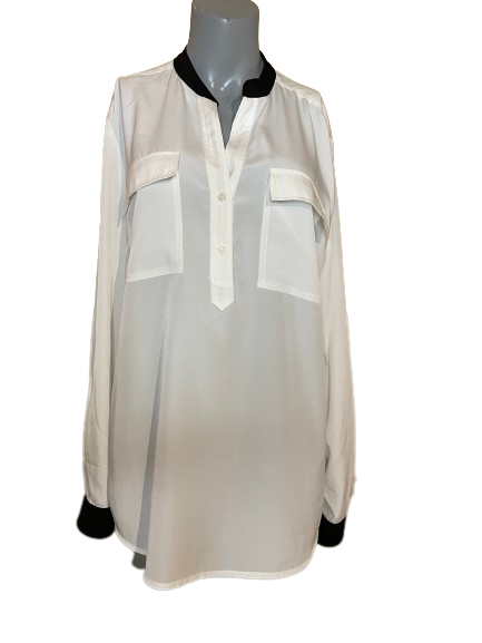 This Lord & Taylor blouse is the epitome of sophistication and style. Crafted from crisp white fabric, its drape and cut will leave you feeling confident and refined. An essential for any wardrobe, it promises to make a timeless statement.