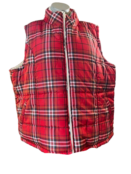 Wrap yourself in cozy style with the Love Ellen DeGeneres Reversible Plaid Vest! Perfect for chilly days, this vest features a warm quilted design and a faux shearling collar. With a vibrant red plaid on one side and a sleek white on the other, you can switch up your look effortlessly. Stay stylish and warm all season long!