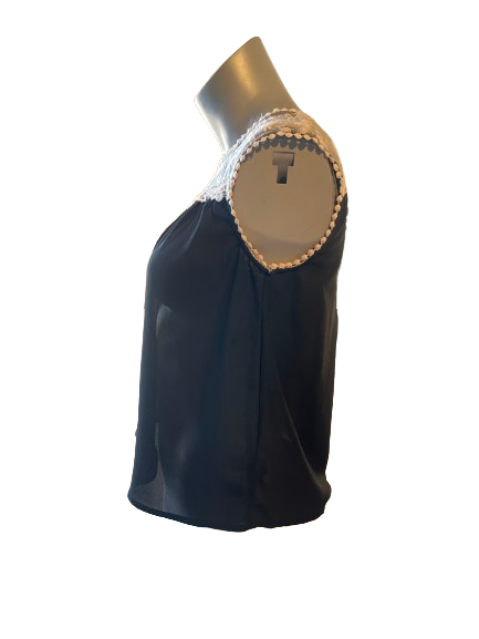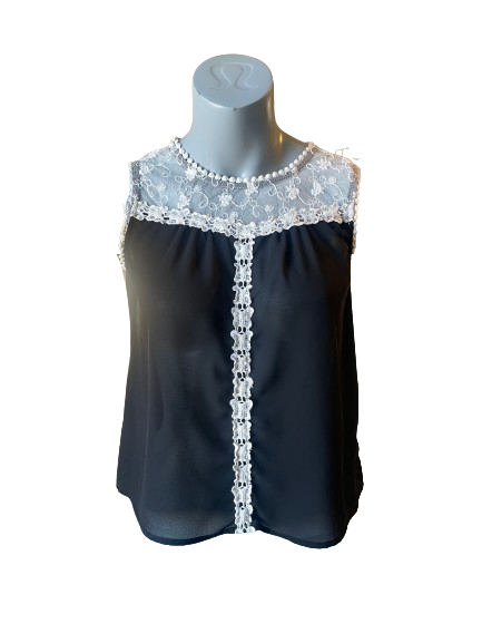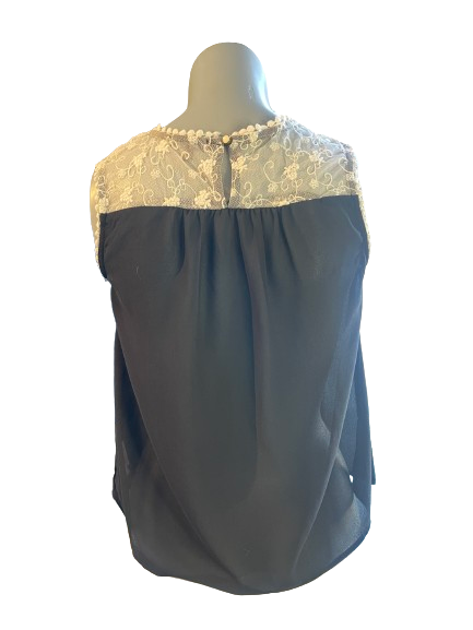Indulge in luxury with this secondhand Monteau Black Sheer Sleeveless Top. This elegant top features sheer fabric and a sleeveless design that adds a touch of sophistication to any outfit. Perfect for those seeking a taste of exclusivity in their wardrobe.