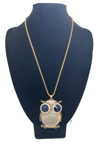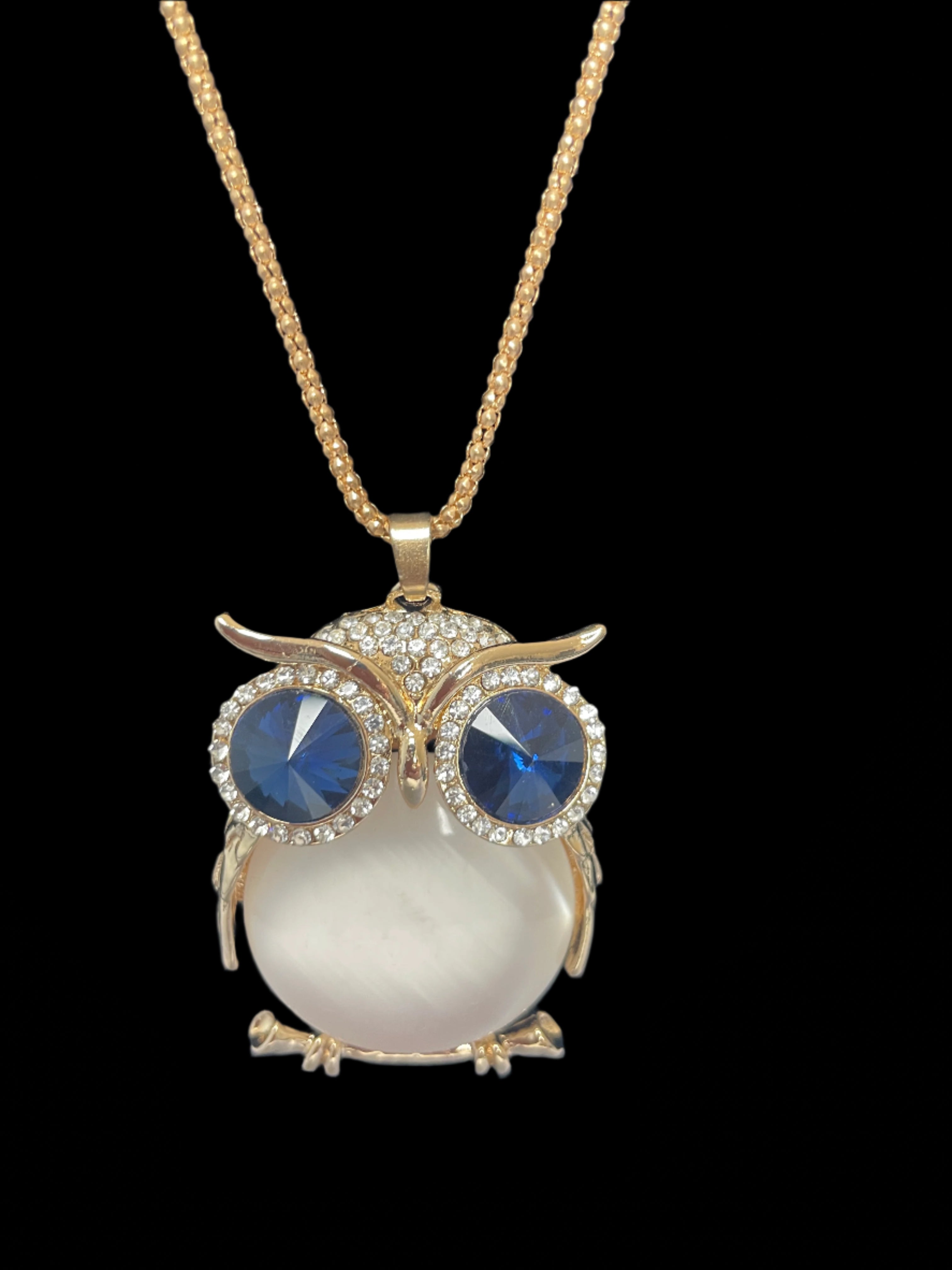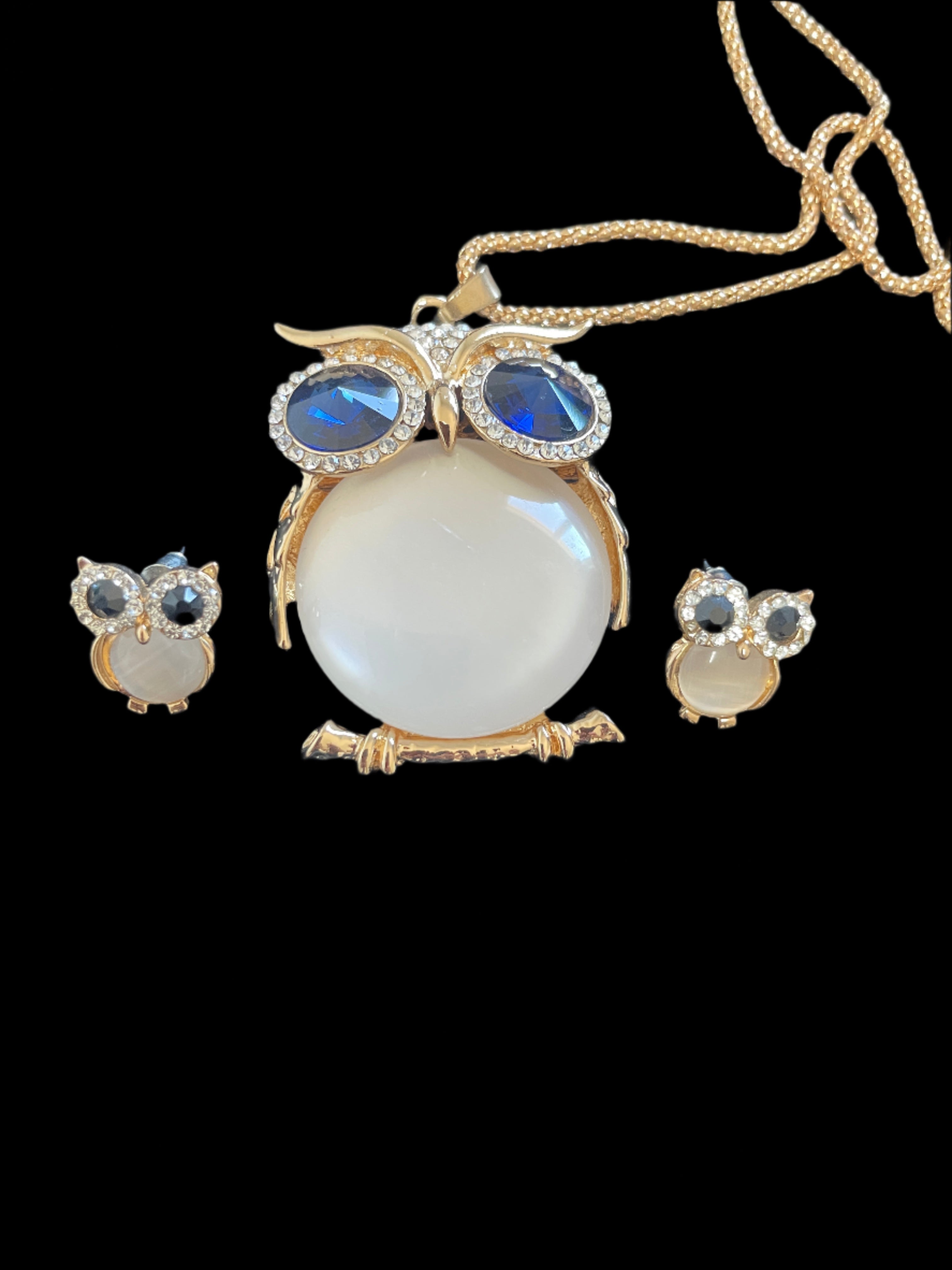 This stunning owl jewelry set is full of character and charm! 🦉💫 The large owl pendant features eye-catching faceted blue stones and shimmering details, with matching stud earrings to complete the look. The chain is a long 80cm and closes with a lobster clasp. Earrings are for pierced ears. This set is in excellent, like new condition — even more dazzling in person!