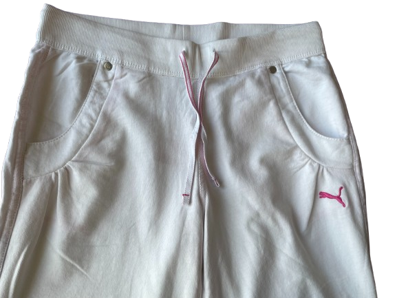 Elevate your workout with these Puma White Capri Sweatpants! Featuring a clean white design with playful pink accents, these sweatpants will not only keep you comfortable during your exercise routine, but also add a stylish touch to your look. Make a statement and feel confident in these trendy sweatpants. 🔥💪