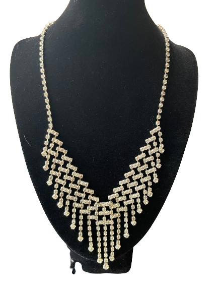 Add a touch of glamour to any ensemble with this Rhinestone Bib Necklace. Crafted with sparkling rhinestones, this statement piece will elevate your fashion game. The bib style adds a unique and luxurious touch, perfect for those seeking a sophisticated and exclusive look. ✨👑