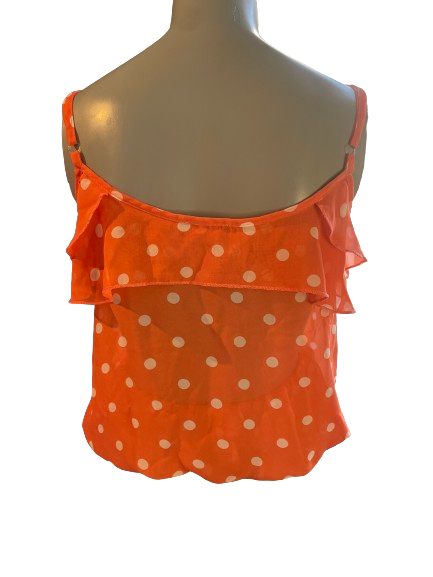 Be the cutest of the bunch with this Ripe Orange Polka Dot Sheer Tank 🍊👀. Embrace the fun and playful vibe of this tank featuring adorable polka dots. Perfect for adding some quirky flair to any outfit. 🎉