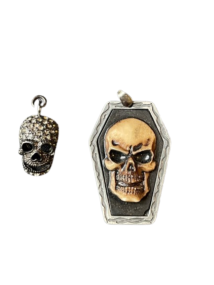 🪦🔥Show off your daring side with this Set Of Two Skulls Pendants! Perfect for those who love to take risks and add a bold touch to their style. These edgy pendants will make a statement and add a touch of adventure to any outfit. 🔥🪦