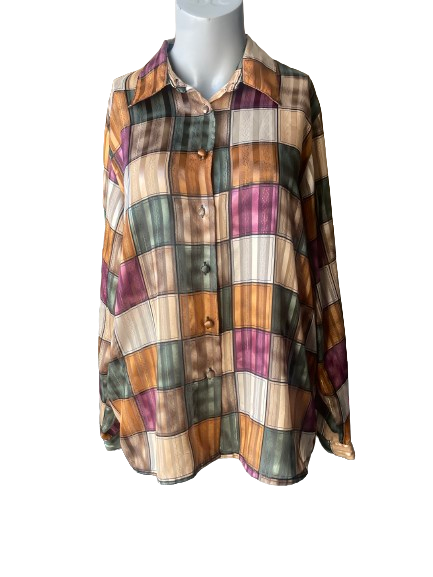 Embrace the beauty of nature with this secondhand Sheer Multi-Coloured Blouse! 🌿 Featuring stunning earth tones, this blouse will make you feel confident and connected to the world around you. Embody elegance and style with this versatile piece! 🌸