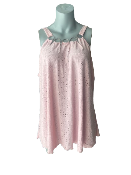 Introducing the perfect top for your summer wardrobe: SHEIN Curve Pink Eyelet Embroidery O-Ring Cami Top! This charming top features a delicate pink hue that's sure to brighten up any outfit. Its eye-catching eyelet embroidery and O-ring detail add a touch of elegance. Get yours now! 🌸