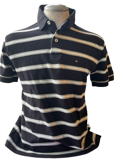 Upgrade your wardrobe with this classic Tommy Hilfiger Black Striped Polo! 🌟 Add a touch of sophistication to your style while feeling comfortable all day long. Perfect for any occasion, this polo is a must-have. 💪