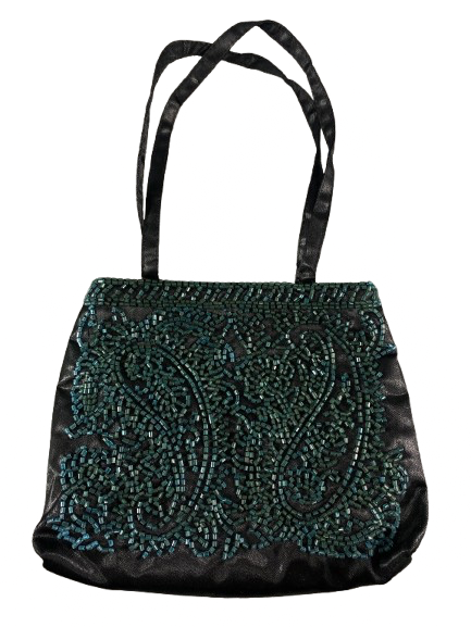 Fall in love with this Vintage Beaded Black Small Purse! The perfect accessory for any occasion, this purse features stunning green beads on a classic black fabric. Its vintage charm adds a touch of elegance to any outfit. Don't miss out on this must-have item!