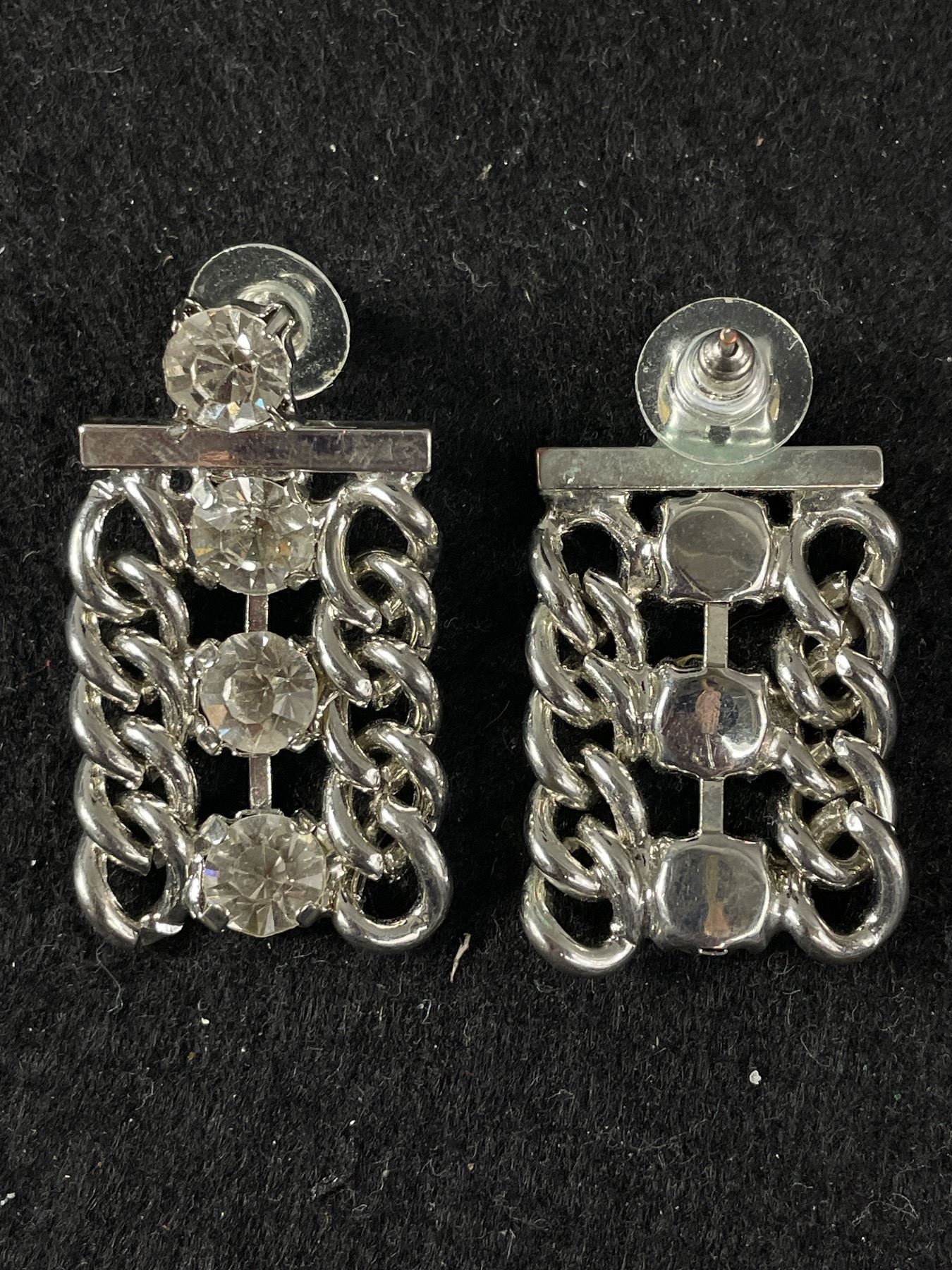 • Vintage Rhinestone Silvertone Necklace Earrings Set