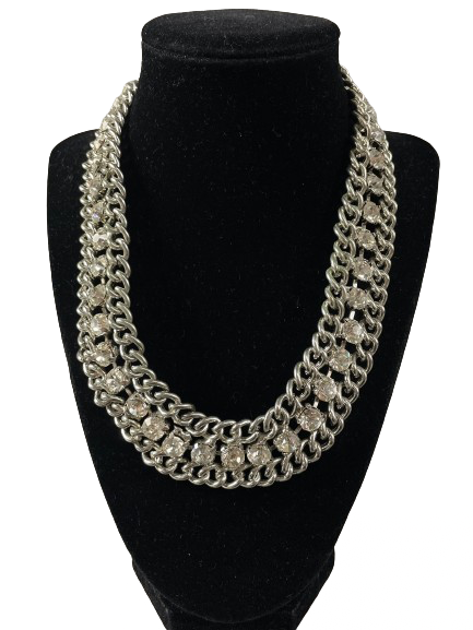 Indulge in vintage glamour with this exquisite 1950's - 1960's rhinestone necklace and earrings set. The sparkling stones and elegant silvertone design evoke a sense of luxury and sophistication. Elevate any look with this timeless statement piece.