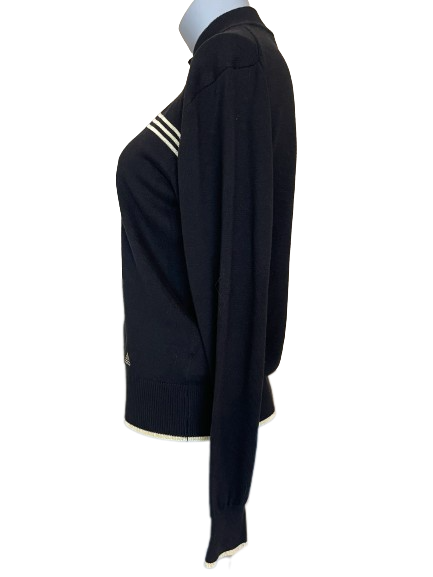 This classic black Adidas sweater features a mock-neck and quality construction, so you can move with confidence. Show off a sleek silhouette and stay warm in any situation. Enjoy the soft, comfortable fit and top-notch craftsmanship.
