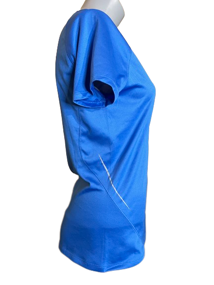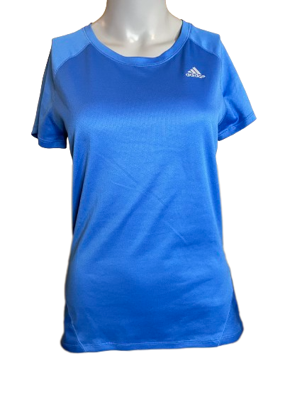This Adidas Blue Climalite Short Sleeve Top is designed for superior performance. The lightweight, moisture-wicking fabric pulls sweat away from the body, providing a cool and comfortable experience. Its signature Adidas branding adds an athletic look and feel.