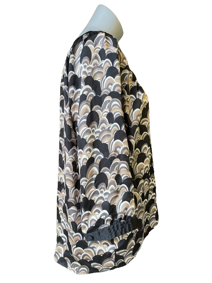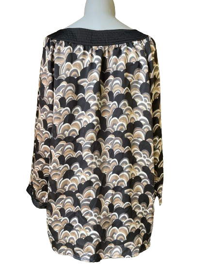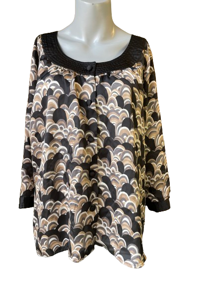 "Stay cool and comfy in this Covington Brown Black Blouse! With a flowing design and roomy fit, this blouse is perfect for any occasion. The cool black and brown pattern adds a touch of unique style to your wardrobe. Don't miss out on this must-have piece!"