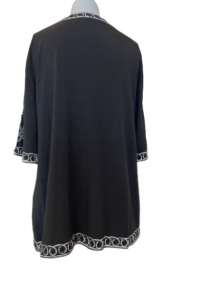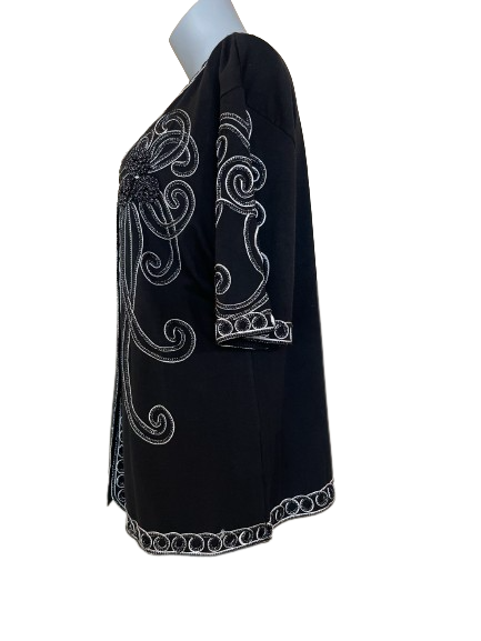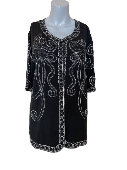 This Lauren Michelle Black Embroidered Metallic Button-Up Blouse is a sophisticated piece of art. The elegant rope metallic embroidery will make you stand out at any event. Its timeless design offers a touch of luxury that will make you look like a fashion icon.