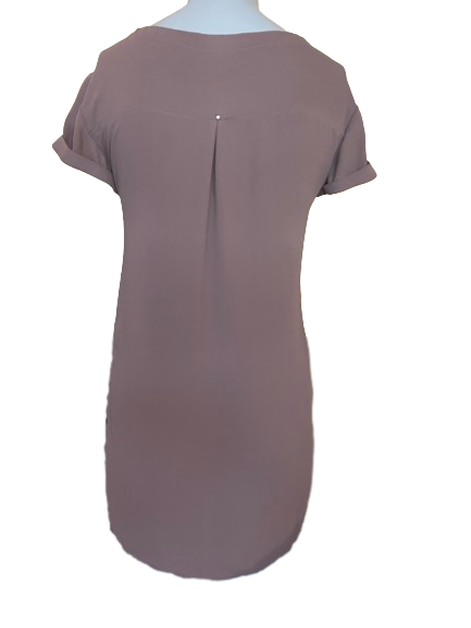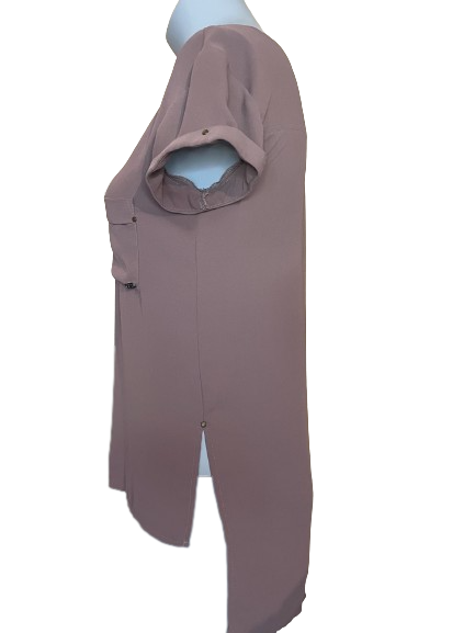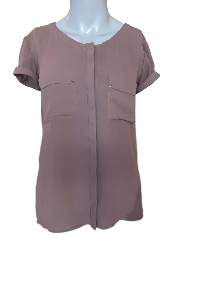 This Monk & Lou Brown Button-Down Short Sleeve Top offers a stylish high low design crafted with lightweight fabric. Its flowing look provides maximum comfort and movement while maintaining a professional look. Be sure to add it to your wardrobe for versatile and timeless style.
